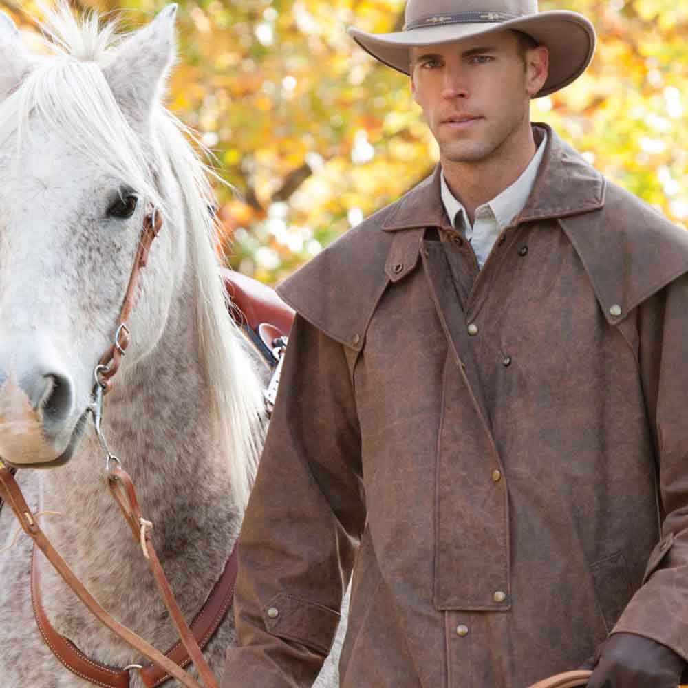 This long brown duster jacket showcases functional button-front closure concealed beneath storm flaps. It also Features deep front pockets for essentials, and adjustable snap cuffs. The split back vent ensures comfortable riding and walking, staying true to its horseback heritage. Unlike shorter leather trench coats, this duster’s extended length offers unmatched drama and weather protection.