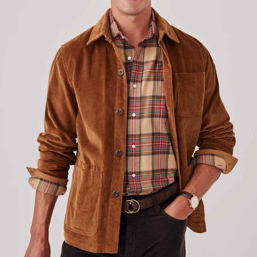 Crafted from high-quality corduroy fabric with a rich brown hue, this corduroy over shirt delivers exceptional warmth without bulk. The distinctive ribbed texture adds visual depth and tactile appeal, while the durable cotton construction ensures this piece withstands seasons of wear. Unlike typical heavy sherpa lined corduroy jacket, this relaxed-fit jacket moves effortlessly from indoor to outdoor settings.