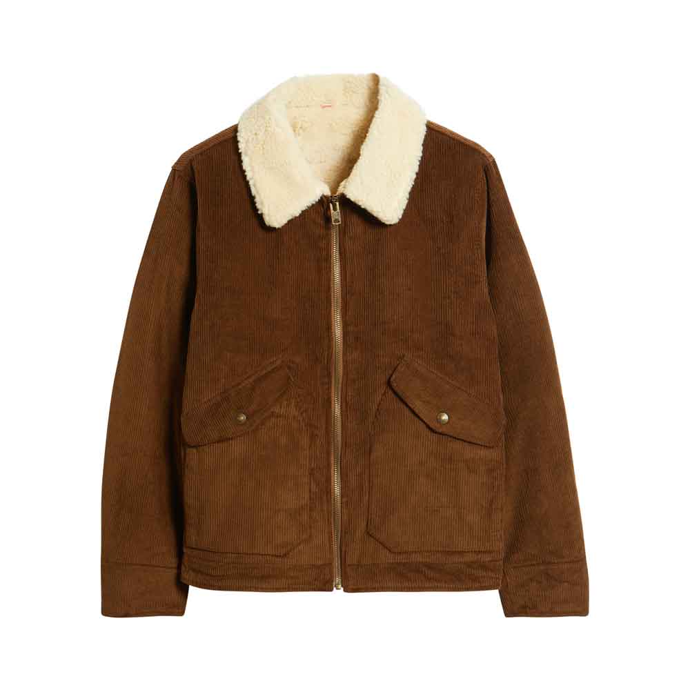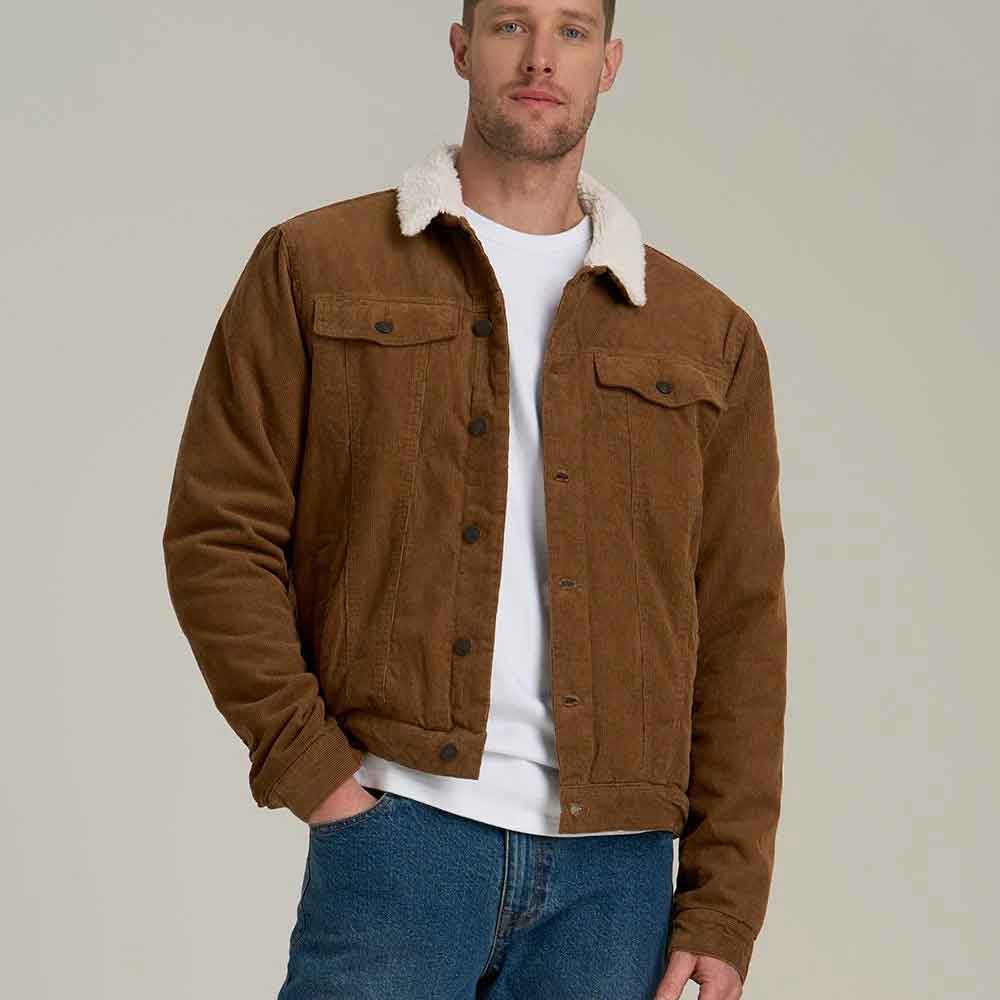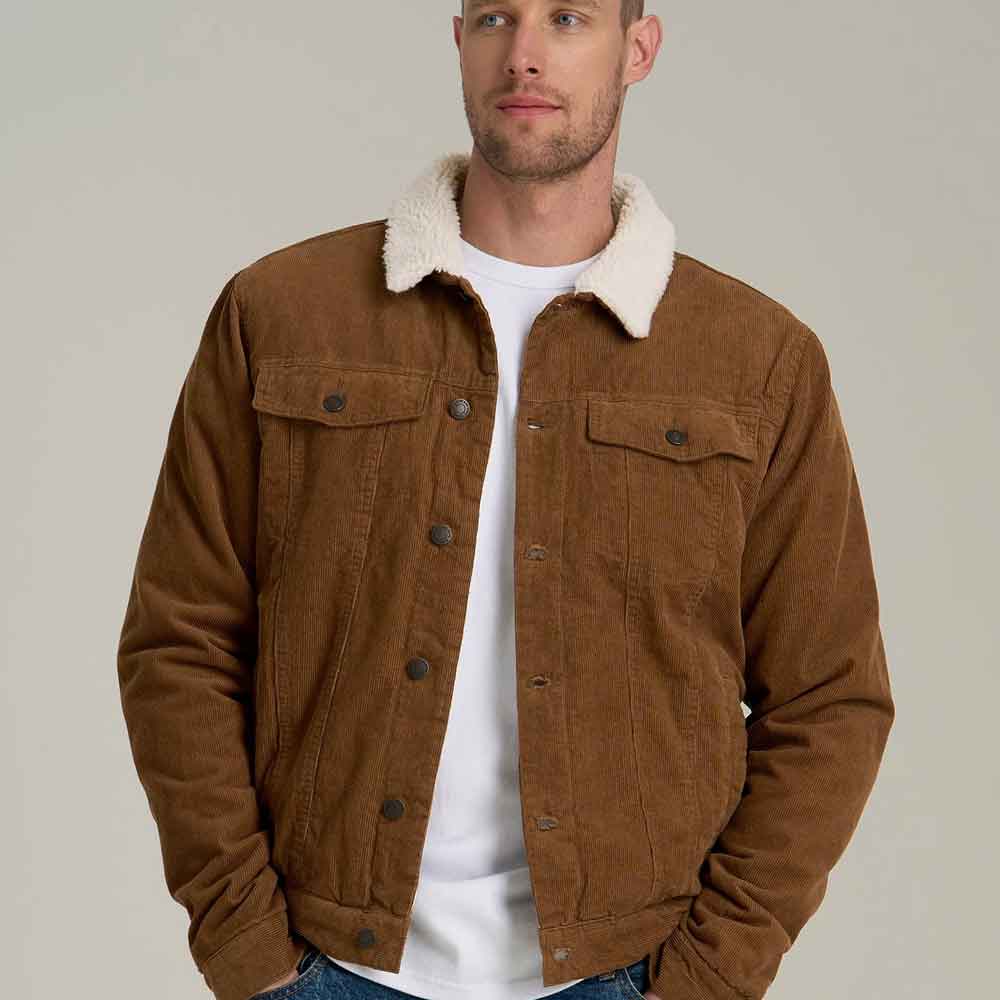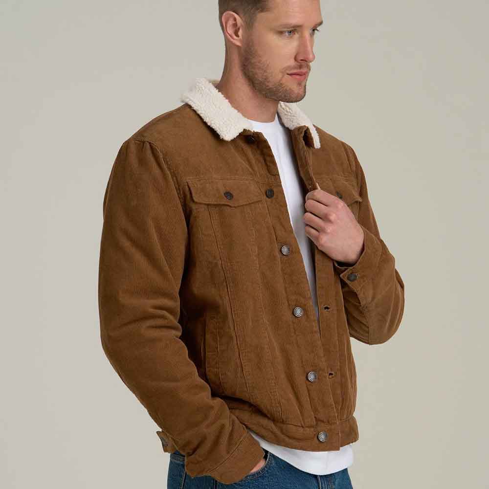 Sherpa Lined Corduroy Trucker Jacket in Brown