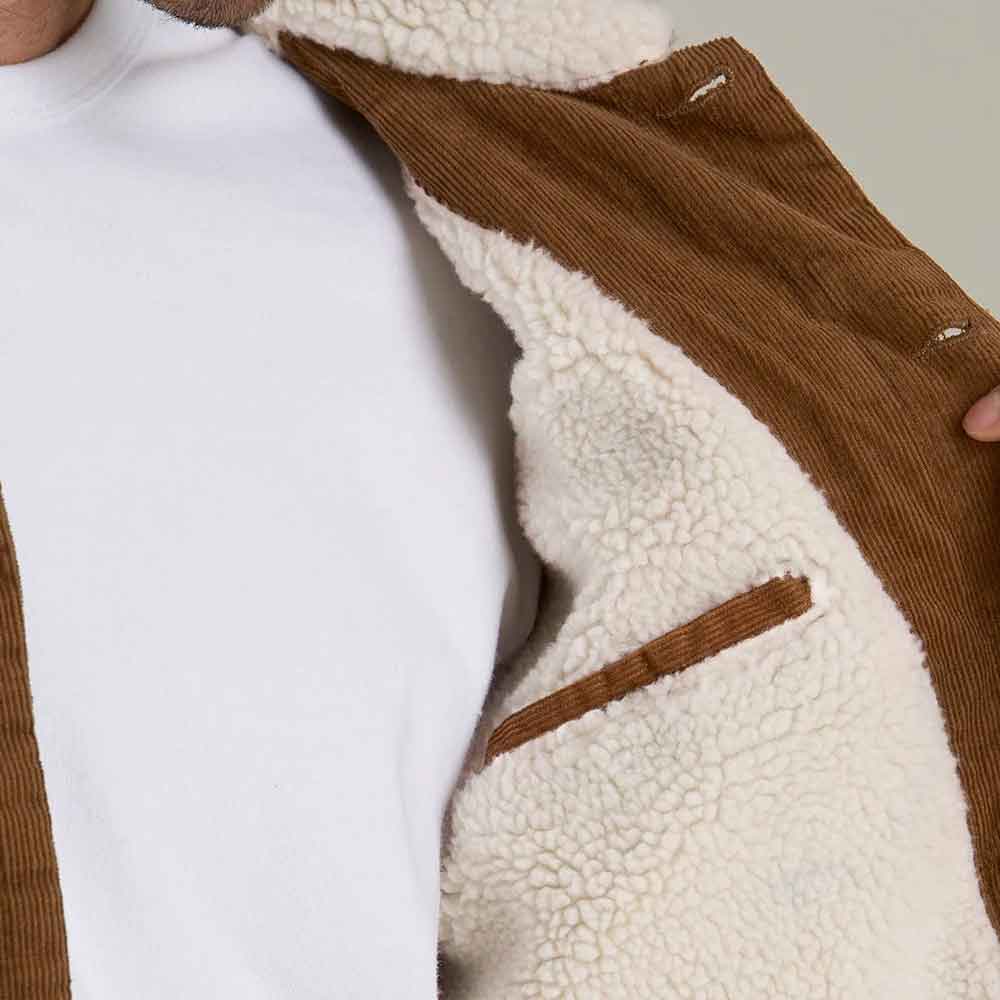 Be the first to review “Sherpa Lined Corduroy Trucker Jacket in Brown”