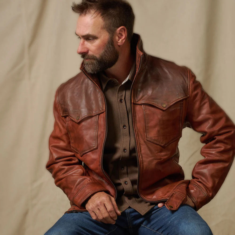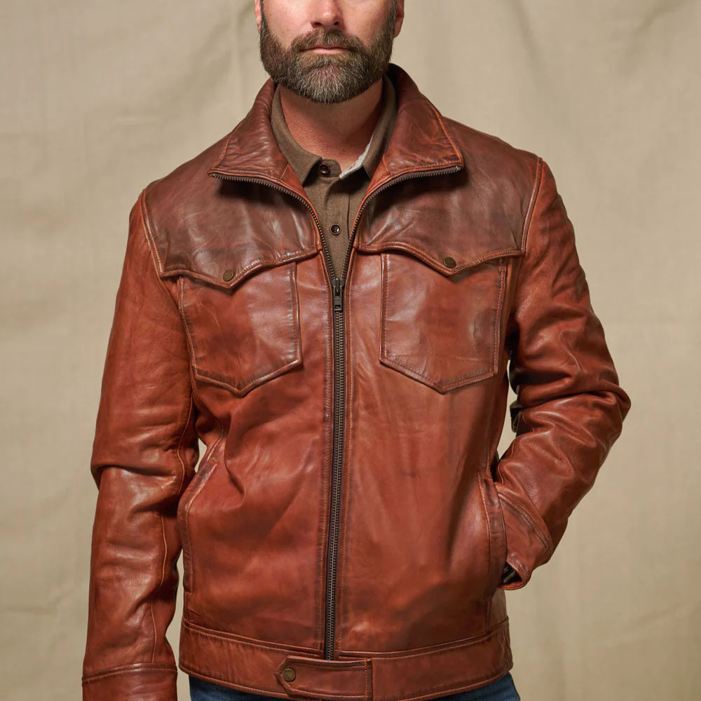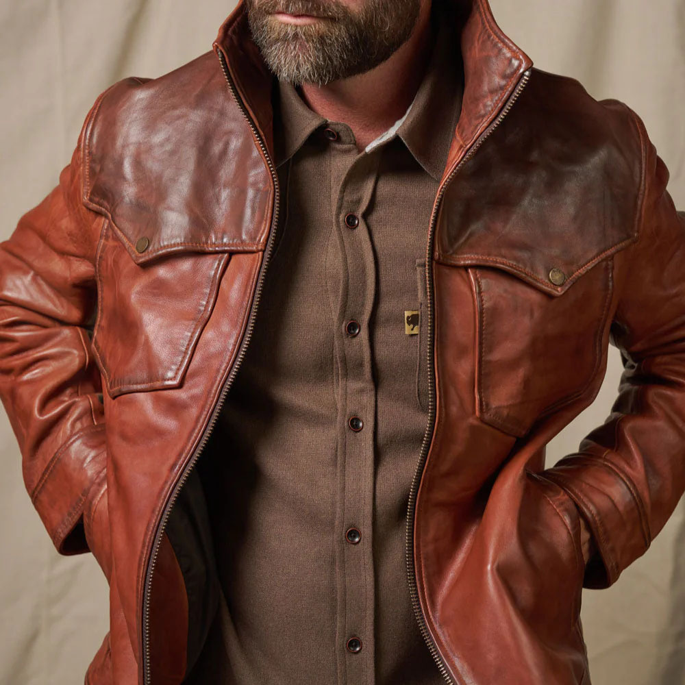 This Vintage Leather Jacket for Men in Western Style captures the rugged charm of the American frontier with a modern twist. Crafted from premium full-grain leather, it delivers an authentic aged look that only gets better with time. The contrasting shoulder panels and classic western yoke stitching highlight its unique character, making it perfect for riders, travelers, and vintage-style enthusiasts.